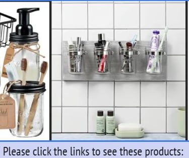 Mason jar organizers are a charming way to add both storage and personality to your bathroom. They’re perfect for corralling all the tiny items that usually clutter your counter—think cotton swabs, makeup sponges, flossers, and hair ties. You can mount them on a board, line them up on a shelf, or even hang them individually for a cute, functional display that keeps everything within reach.