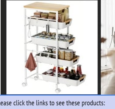 · Slim Rolling Trolley Bathroom Organizer · 5-Tier White Slim Storage Cart w/ pull out baskets · Slim/Mobile Bathroom Cabinet, Space Saving/3-tier
