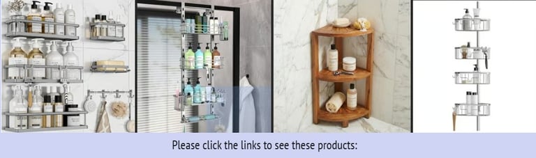 · 6pk Shower caddy, no drilling/inside shower · Hanging Shower Door Caddy Organizer, Adjustable · Corner Shower Teakwood stand · Tension Pole Corner Shower Caddy Adjustable to 108”
