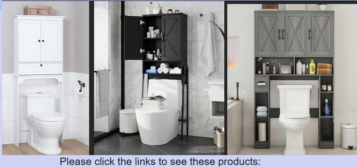 · Above Toilet Storage Cabinet White w/ doors · Over Toilet Storage Cabinet/Organizer Black · Over Toilet Farmhouse Storage Cabinet w/ 3 barn doors & multiple side shelfs Grey